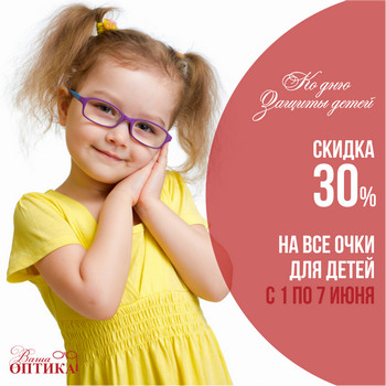 1.1. С 31.05.2021г. по 06.06.2021г., ООО «Ваша ОПТИКА», именуемое «Организатор», проводит в своих салонах стимулирующую акцию «Скидка -30% на детские очки» (далее – «Акция»).