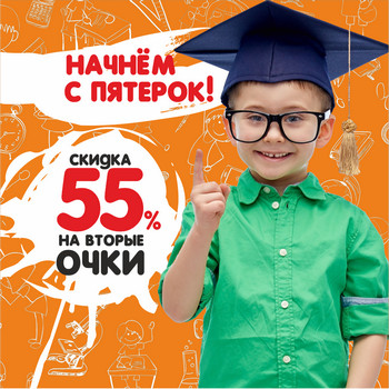 Мы рады объявить о старте новой акции в наших салонах! Если вы школьник или студент и носите очки – тогда вам нужно успеть до 15 октября успеть посетить одну из наших оптик и заказать себе очки – ведь именно в это время мы предоставляем скидку на изготовление очков 30%!