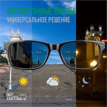 Универсальное решение – так можно сказать об очках с фотохромными линзами или как еще их называют «хамелеоны». Коррекция зрения и защита от ультрафиолета – вот два основных свойства, присущих этим линзам. Но не только. Современные технологии изготовления линз позволяют: