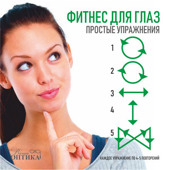 Последствиями хронического перенапряжения глаз, например при работе за монитором компьютера, может привести к головной боли, нервозности, общей усталости. Да и с возрастом качество зрения может измениться. Конечно, сначала необходимо исключить заболевания глаз, при которых эти симптомы выражены – для этого посетите специалиста. Но как правило, эти симптомы и изменения связаны с работой глазных мышц. Если вы ходите в фитнес то знаете, что поддержка тонуса мышц возможна только при регулярных тренировках, которые в себе сочетают не только нагрузку, но и релаксирующие упражнения. Итак, займемся фитнесом для глаз! Выполняйте эти простые упражнения регулярно и после длительной зрительной работы и ваши глаза «скажут» вам спасибо.