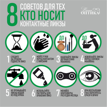 Предпочитаете очкам контактные линзы, потому что они удобны и незаметны – отлично, но всегда следуйте указаниям врача или специалиста оптики, которые были вам даны в момент выбора контактных линз. Правильно носите, бережно храните, выполняйте правила ухода за линзами и тогда вы будете всегда себя ощущать в линзах комфортно, а ношение будет безопасным!