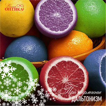 Достаточно редкой формой нарушения зрения является изменение цветовосприятия. Условно: люди с такими патологиями видят красное яблоко синим, желтый банан зеленым, либо, что встречается крайне-редко, вообще не видят цвет. Нужно сказать, что при этом остальные показатели зрения остаются в нормальных пределах. Специалисты такую патологию называют «Дальтонизм». Название эта болезнь получила в честь Дж. Дальтона, английского химика, который имел наследственную форму и в своих трудах подробно описал этот недуг. Причина проявления дальтонизма – нарушение работы рецепторов центральной части сетчатки, вызванное в большинстве случаев наследственностью и врожденной патологией, но реже может быть и приобретённым - травмы, заболевания, интоксикация, воздействие ультрафиолетового излучения. Диагностика, как правило, производится с помощью тестов и таблиц, а коррекция основывается на применении очков со специальными коррекционными фильтрами.